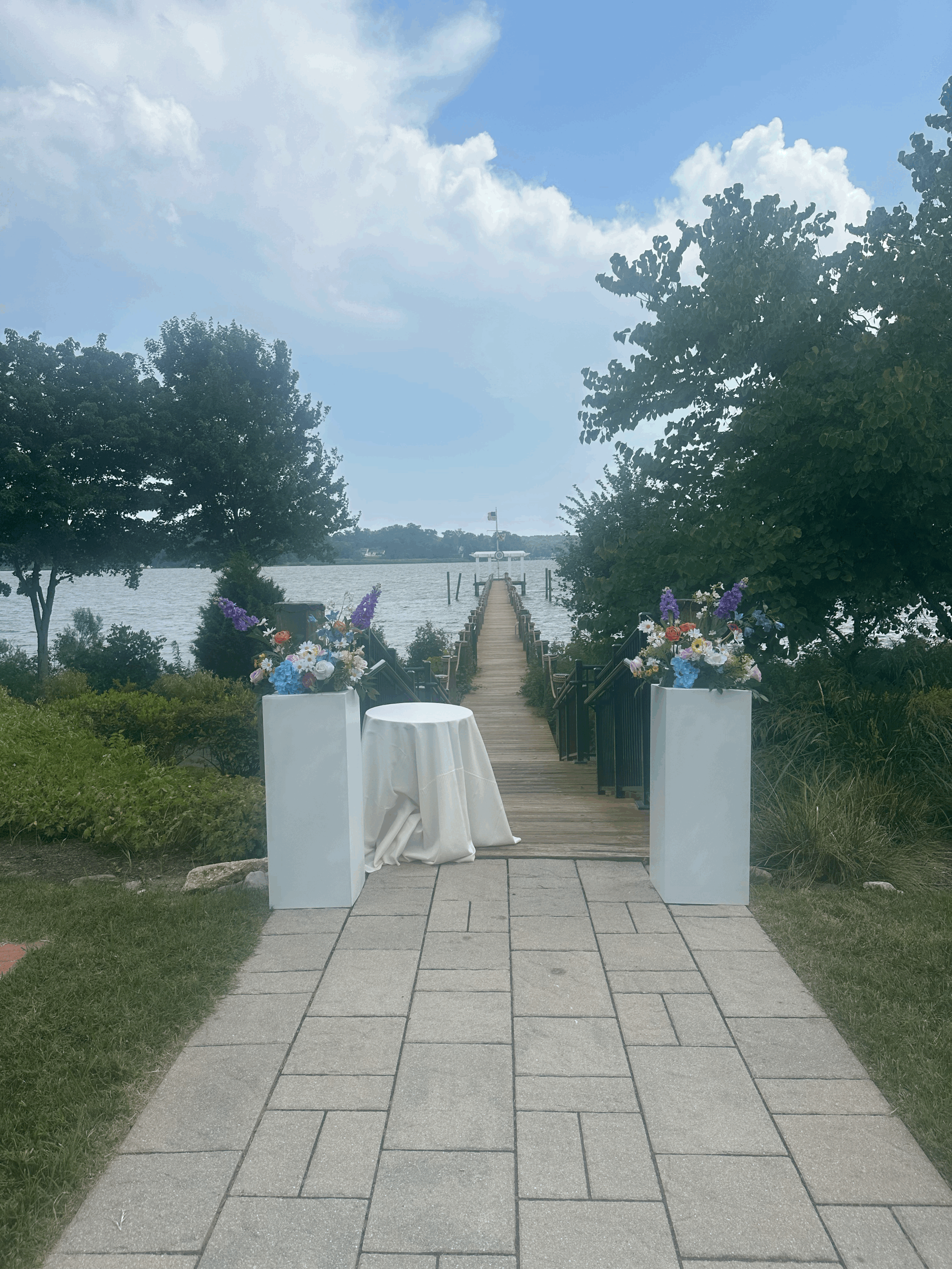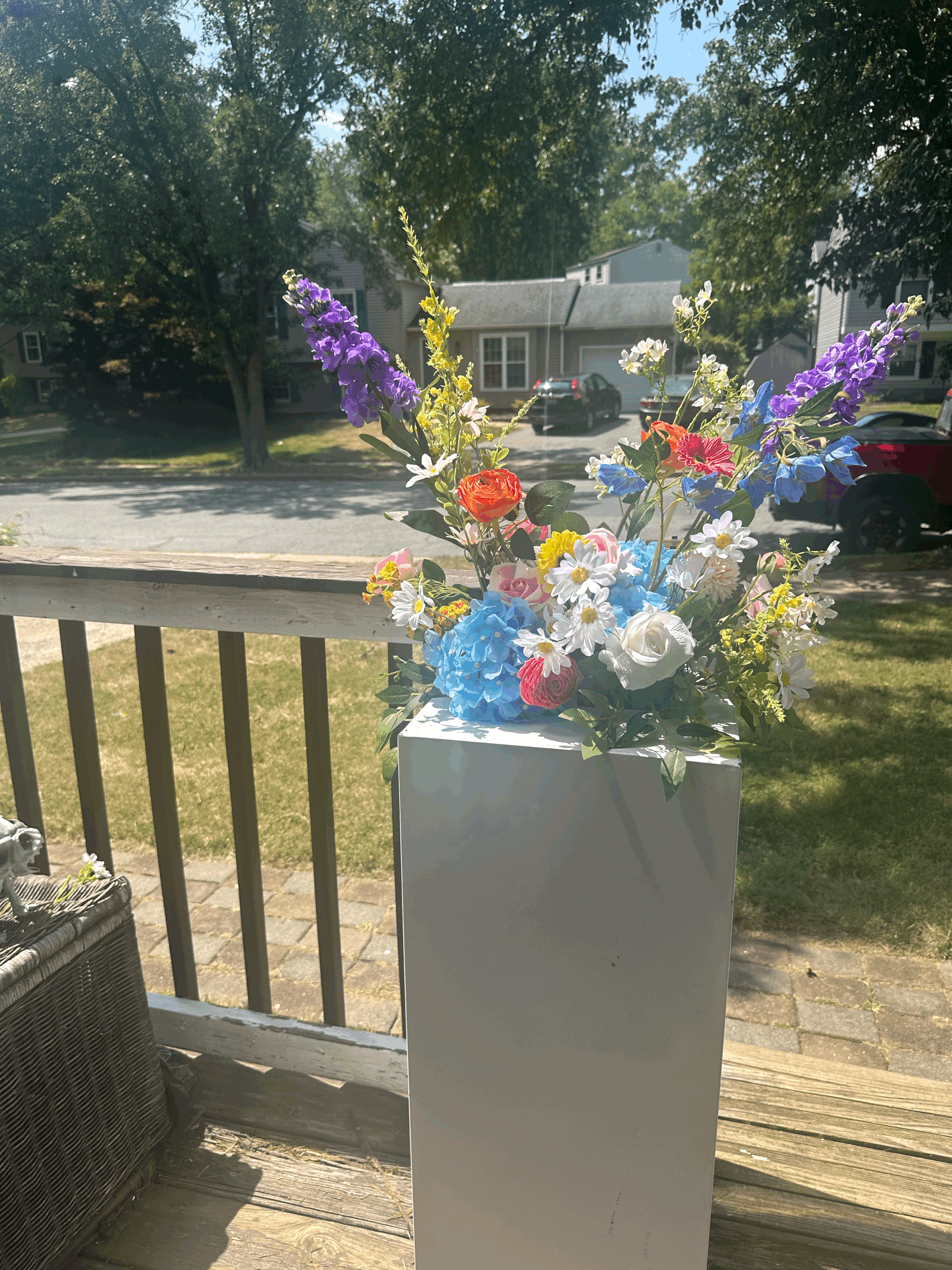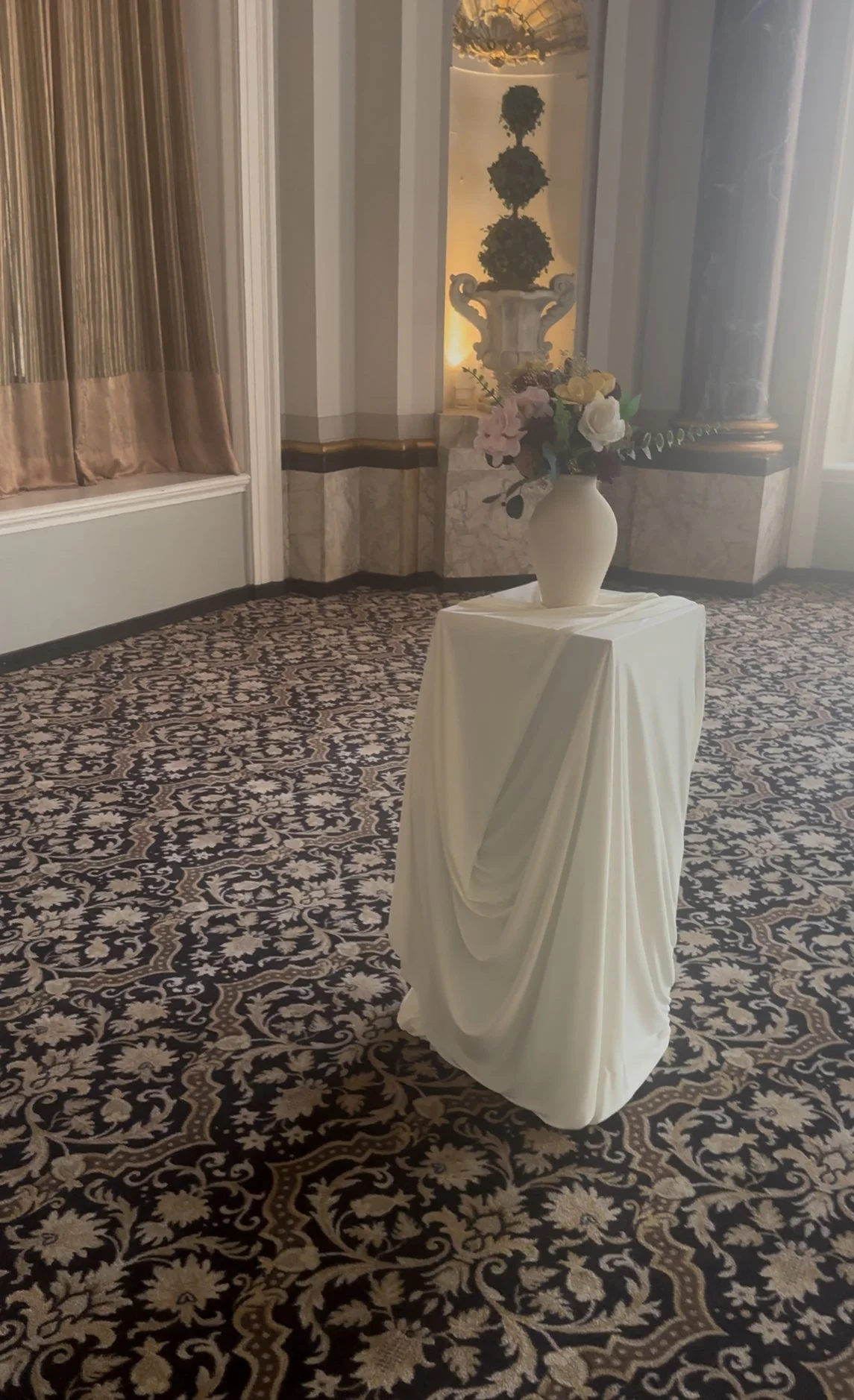 Enhance your event with our 2 White Pedestals/Columns, designed to elevate your decor with elegance and versatility. Perfect for showcasing floral arrangements, drapery, or other statement pieces, these pedestals add a timeless touch to your special day.